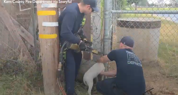 해외 외신에 따르면 캘리포니아에 위치한 소방서에 구조를 기다리는 강아지에 대한 전화를 받았다고 합니다. 호기심이 많은 이 강아지는 울타리에 머리가 끼여 누군가의 도움을 기다리고 있다고 합니다.