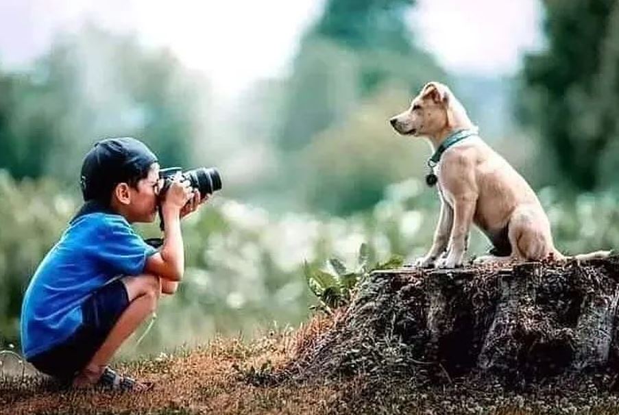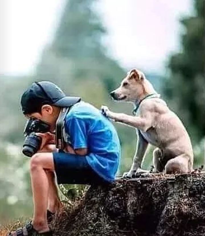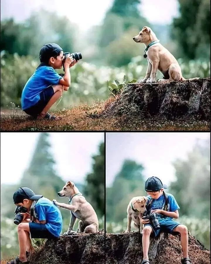 인생 사진을 남기기 위해서 도전하는 이들이 있습니다. 어린 사진작가와 모델 강아지입니다. 푸른 숲에서 사진을 찍는 모습을 찍은 3장의 사진은 마치 강아지가 자신의 포즈에 대한 평가를 하기 위해서 사진 작가와 소통을 하고 있다고 해도 믿을 만한 모습을 하고 있습니다.