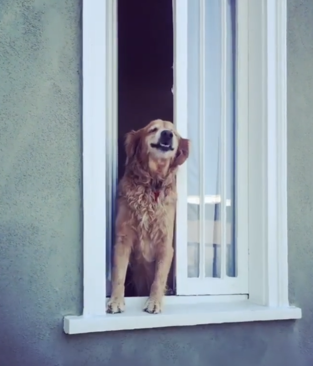 강아지 모쿠는 사람들이 보일 때마다 일어서서 창밖으로 몸을 내 밉니다. 그리고 이웃이 그에게 다가갈 때, 모쿠는 몸 전체와 꼬리를 행복하게 흔들면서 가장 아름답고 큰 미소를 보여줍니다.
