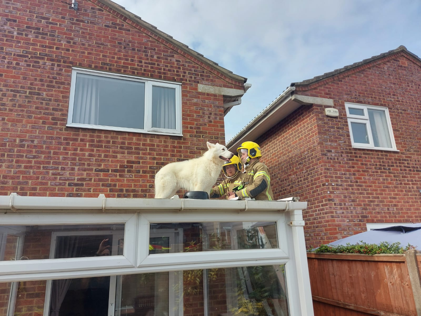 강아지는 그 곳을 벗어나야 했고, 구조를 위해서 열심히 짓기 시작하였습니다. 시끄럽게 짖는 강아지의 소리에 이웃 주민은 소리 나는 곳을 확인하였으며 놀라운 장면을 확인한 후에 바로 구조대에게 구조 요청의 전화를 하였습니다.