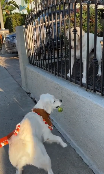 온라인 동영상 플랫폼에 올라온 영상 속에서는 담장 안에서 꼬리를 흔들면서 매일 같이 테니스 공을 던져주고 아래에서 마찬가지로 꼬리를 흔들면서 공을 받는 순수하고 아름다운 달달한 둘의 모습을 확인할 수가 있습니다.