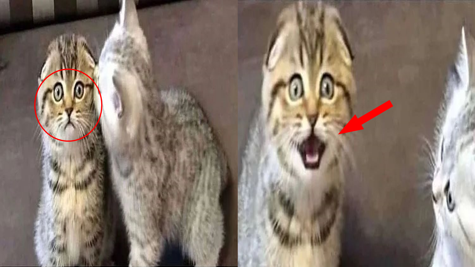 친구에게 이야기 듣고 화들짝 놀라는 고양이