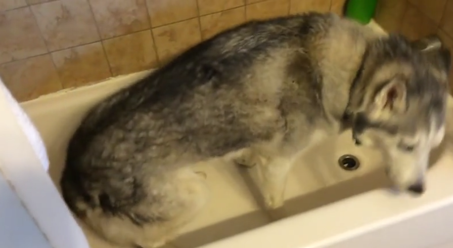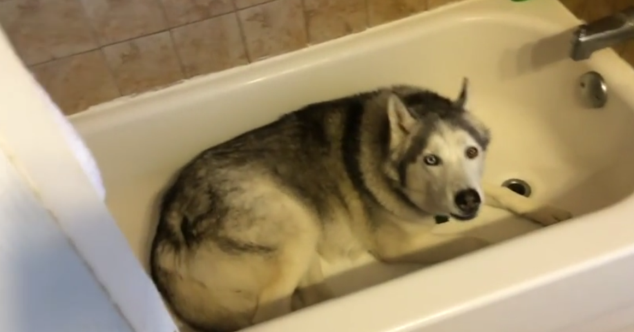 영상 속 주인공 제우스는 당시 7살의 듬직한 허스키로 욕조에서 물놀이를 하는 것을 상당히 좋아하는 강아지입니다. 한참 산책을 해야 하는 시간에도 밖을 나가려고 하지 않고 욕조 속에 온 몸을 넣은 후에 말을 듣지 않고 울부짖으면서 물을 받아달라고 항의를 하고 있습니다.