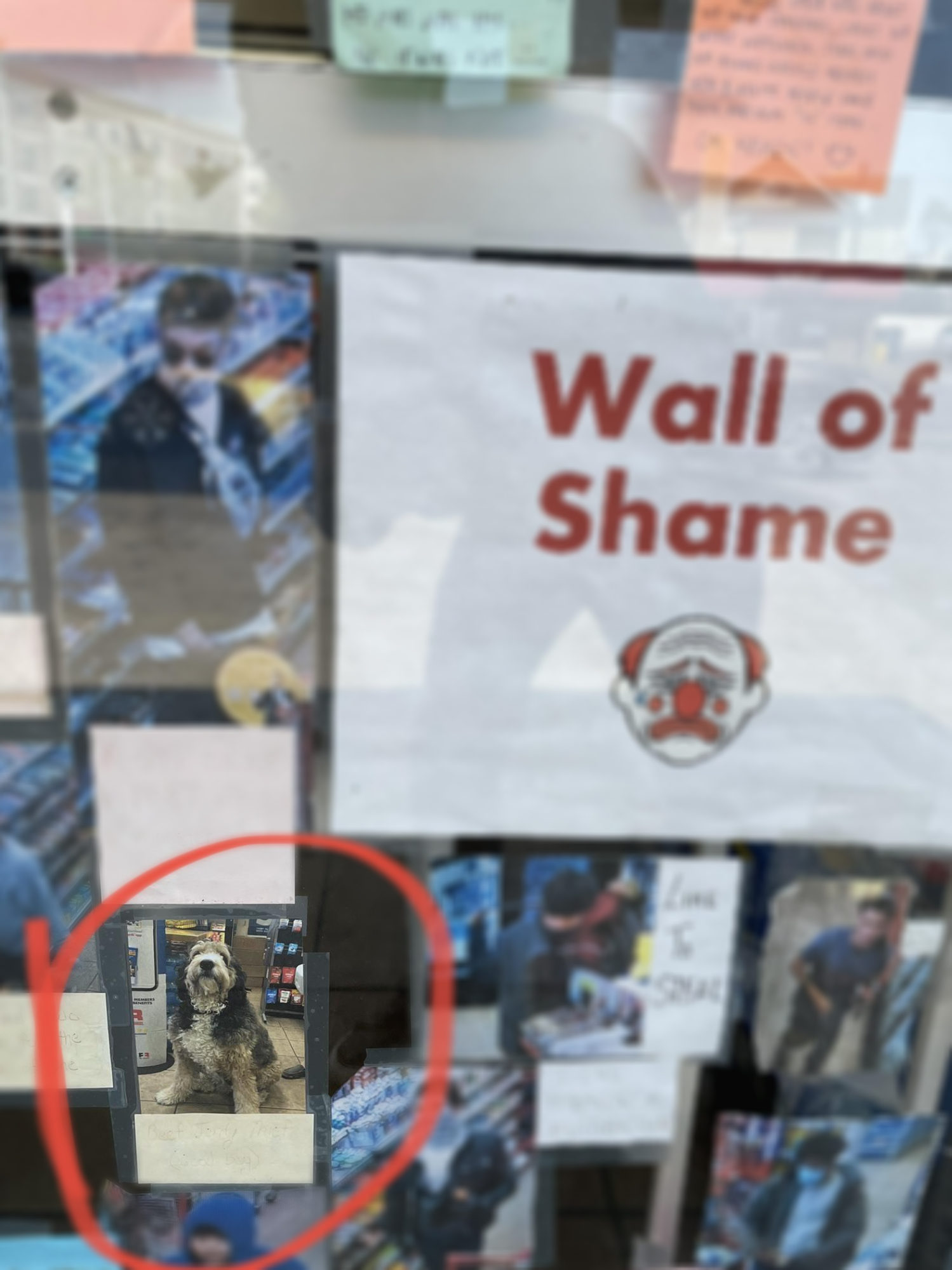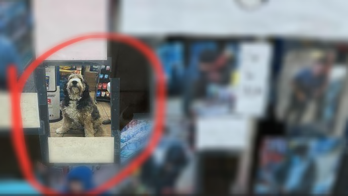 사진 왼쪽 하단부에 동그라미가 쳐있는 사진은 일반적으로 물건을 절도해가는 사람이 아닌 강아지입니다. 각 사진별로 가게에서 훔쳐간 품목이 적혀 있는 것을 확인할 수가 있습니다.