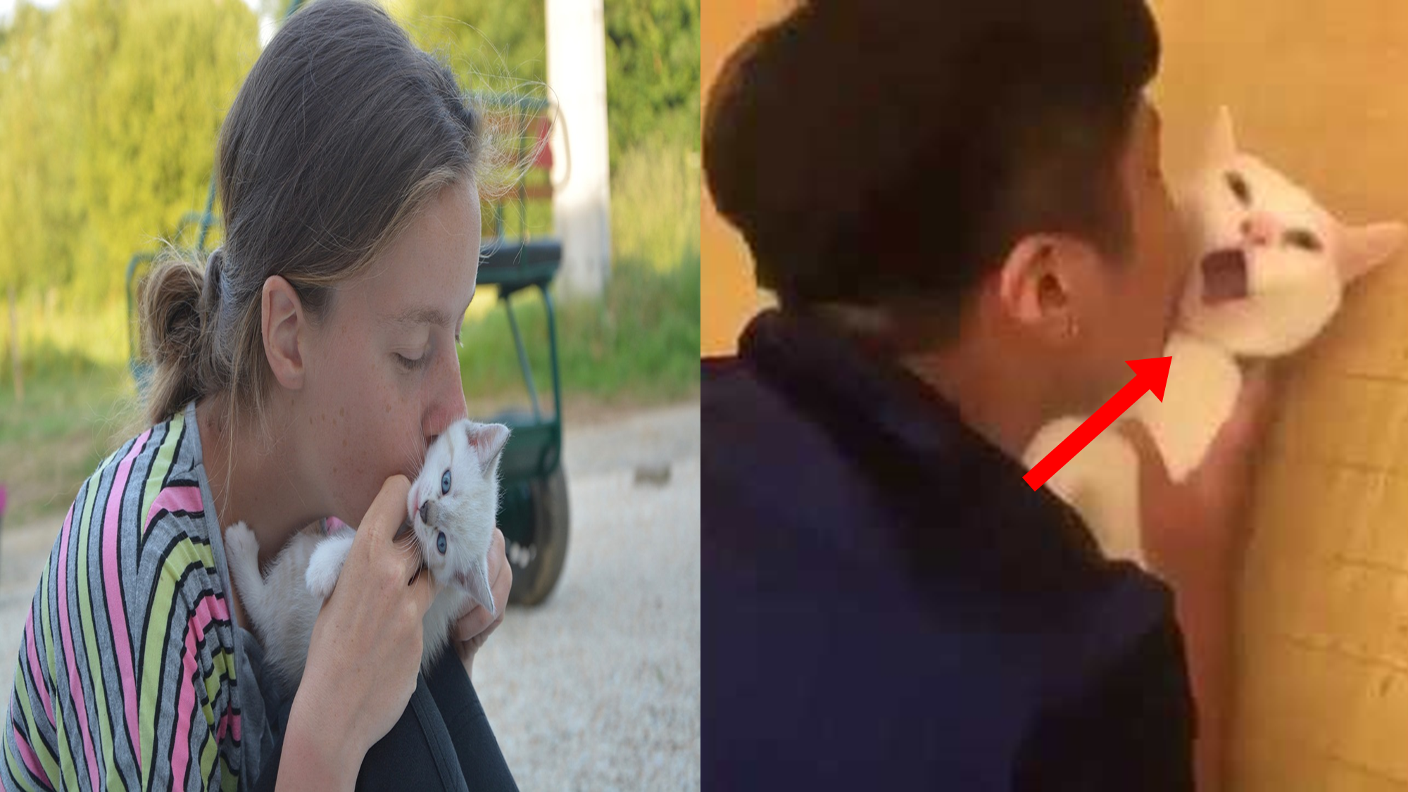 또한 눈을 마주치고 지그시 감았다 뜨는 행동 또한 애정이 담긴 '눈 키스'로 유명한데요. 이러한 고양이의 언어와는 달리 막무가내로 얼굴을 들이밀어 입술로 꾹 눌러버리는 사람의 행동에는 고양이가 당연히 당황할 수밖에 없습니다.