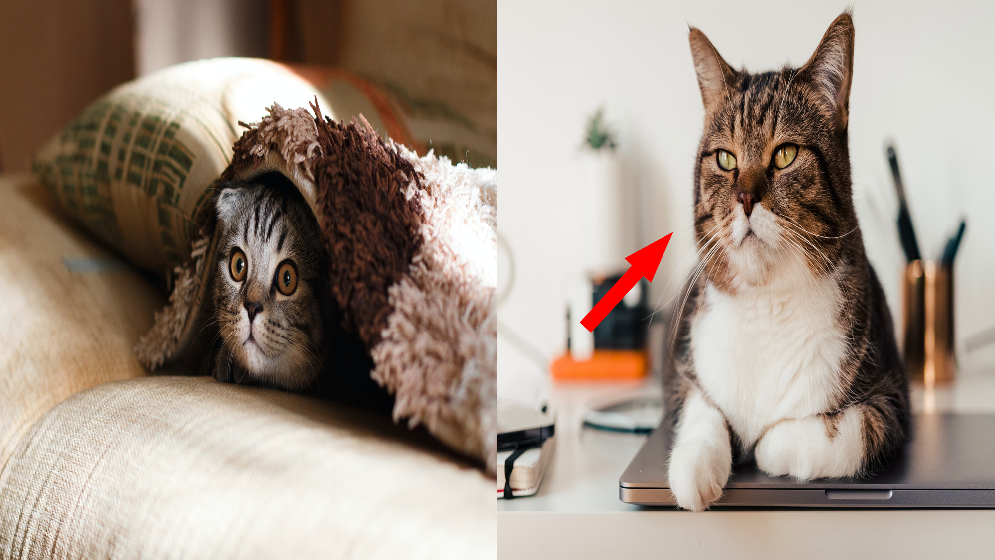 가장 흔하게 볼 수 있는 행동으로 특히 책을 읽거나 노트북을 할 때 책위, 노트북에 올라가거나 아예 누워버리는 경우가 많습니다. 노트북의 경우 따뜻해서 올라가는 경우도 있지만 계속해서 방해한다면 집사의 관심이 필요한 것입니다. 자신 말고 다른 것에 집중하고 있으니 자신을 봐달라는 것입니다. 이럴 땐 하던 일을 잠시 멈추고 놀아주도록 하세요.