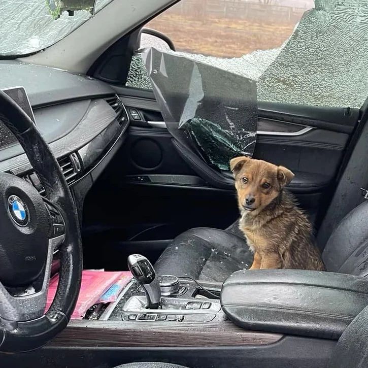 검문소는 러시아 군에 의해 폭격 당하고 살아남은 개는 입양이 되었습니다. 살아남은 개는 폭발로 유리창이 깨진 자동차 안에서 발견되었다고 합니다.