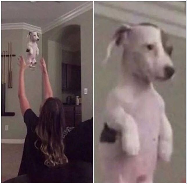 하지만, 높이 올라간 강아지는 정확하게 서 있는