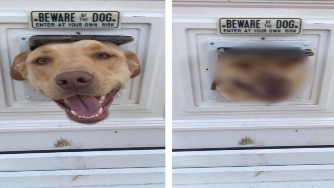 팻말에 쓰여있는 '개 조심 문구' 가 너무나