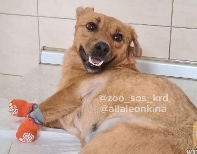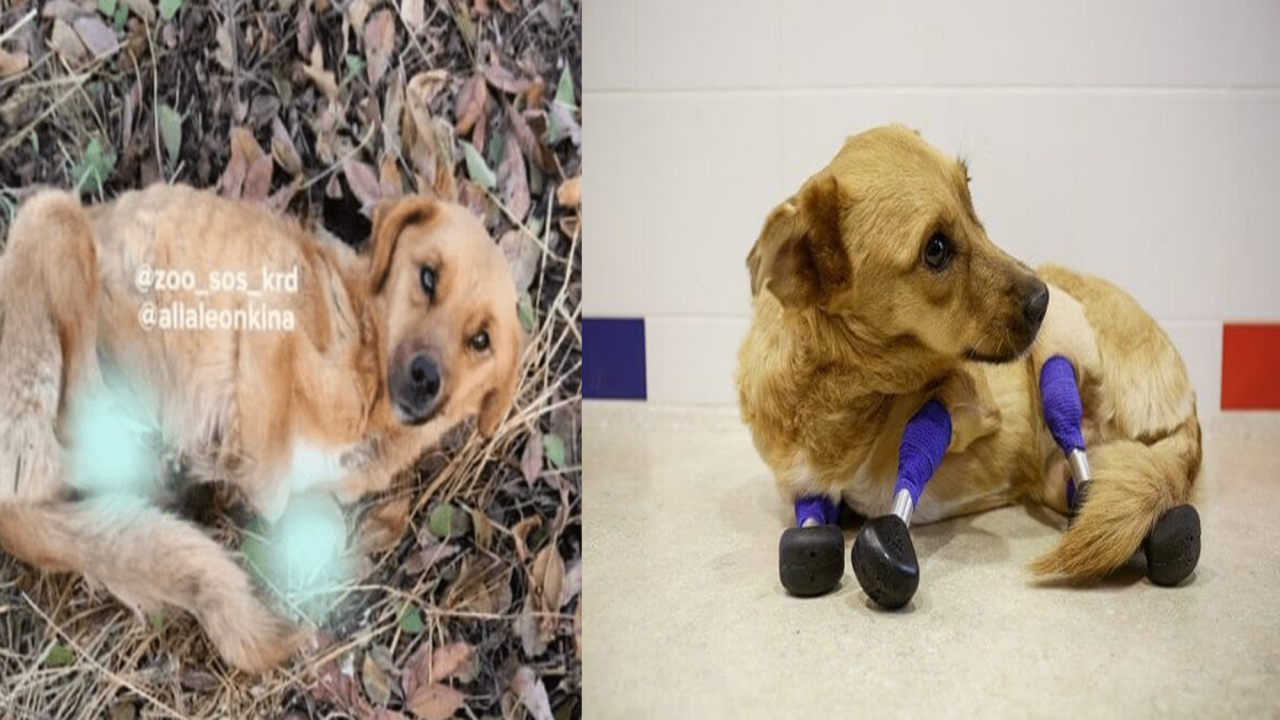 다리가 모두 절단된 상태로 발견된 유기견, 다시 걷게 되었습니다.