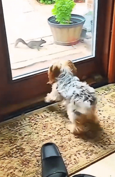 문 앞에 있는 슬리퍼는 물어서 사정없이