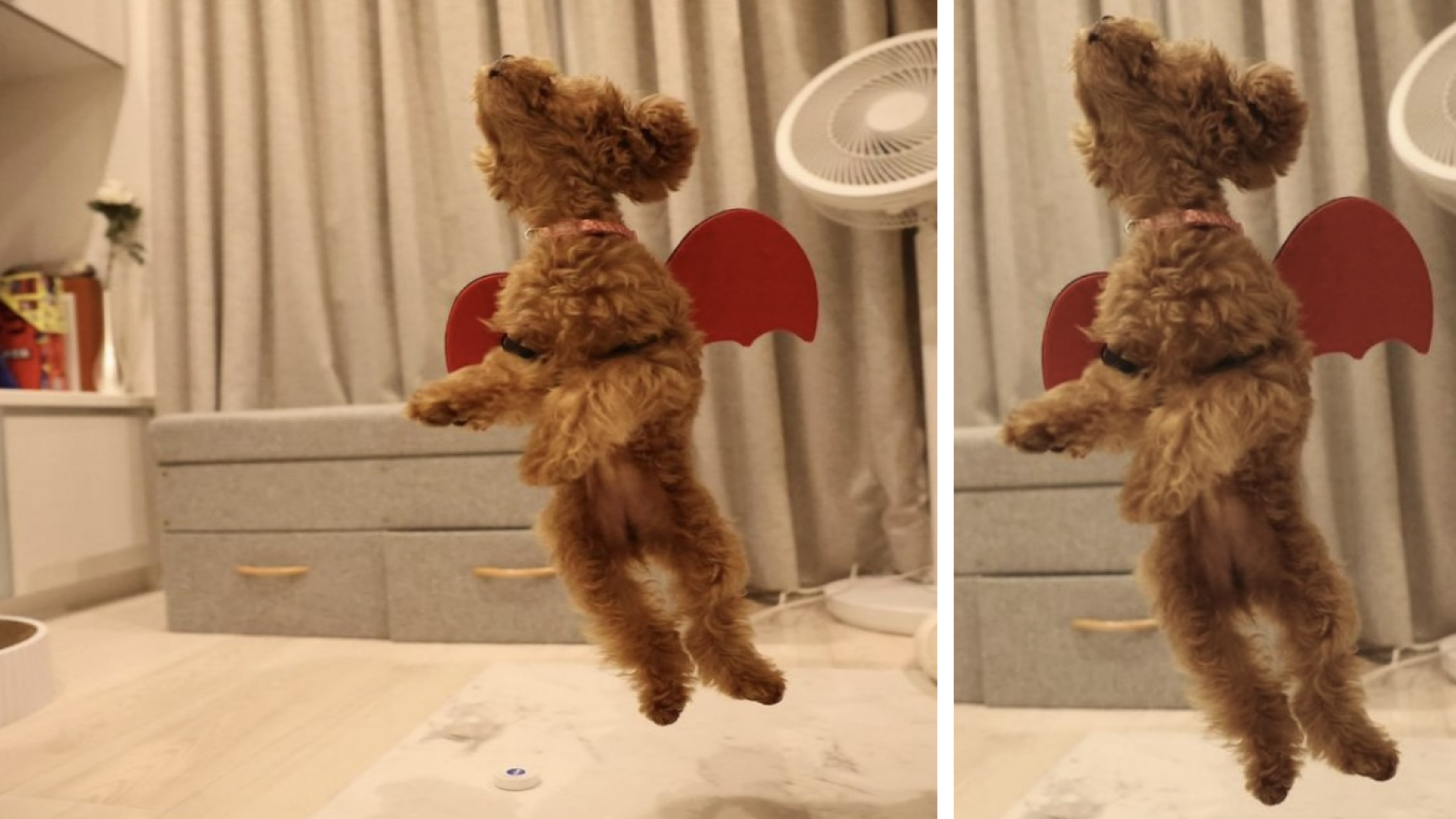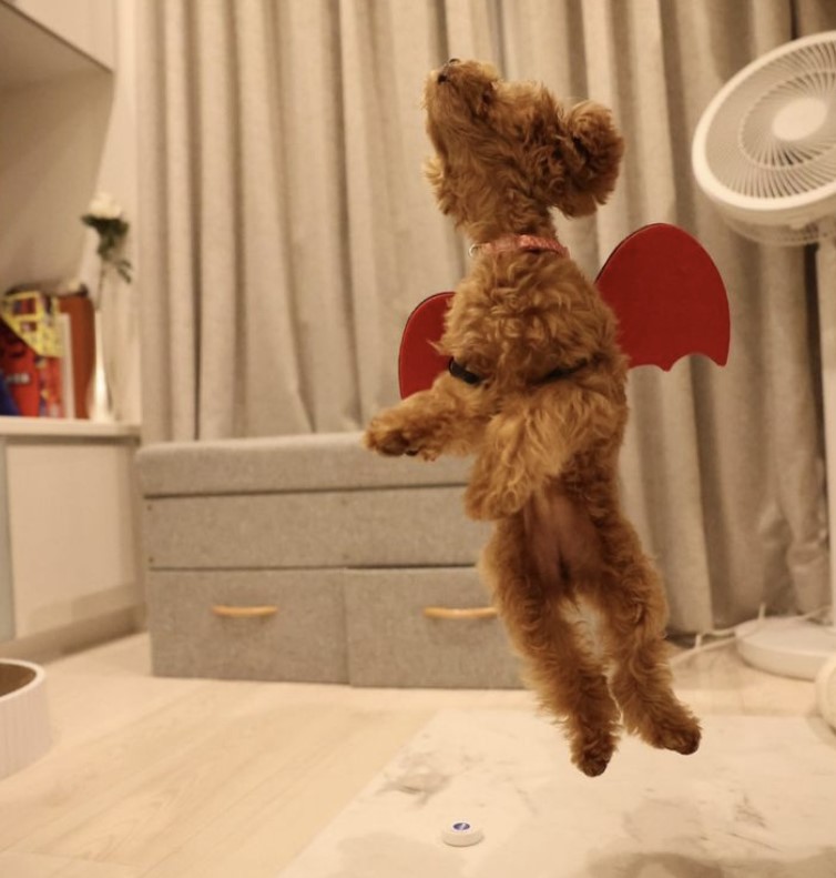 하늘을 훨훨 날고 싶은 강아지가 있습니다.