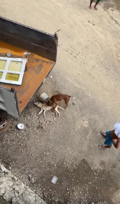 있는 곳으로 가서 개의 뒷발을 잡고 들어