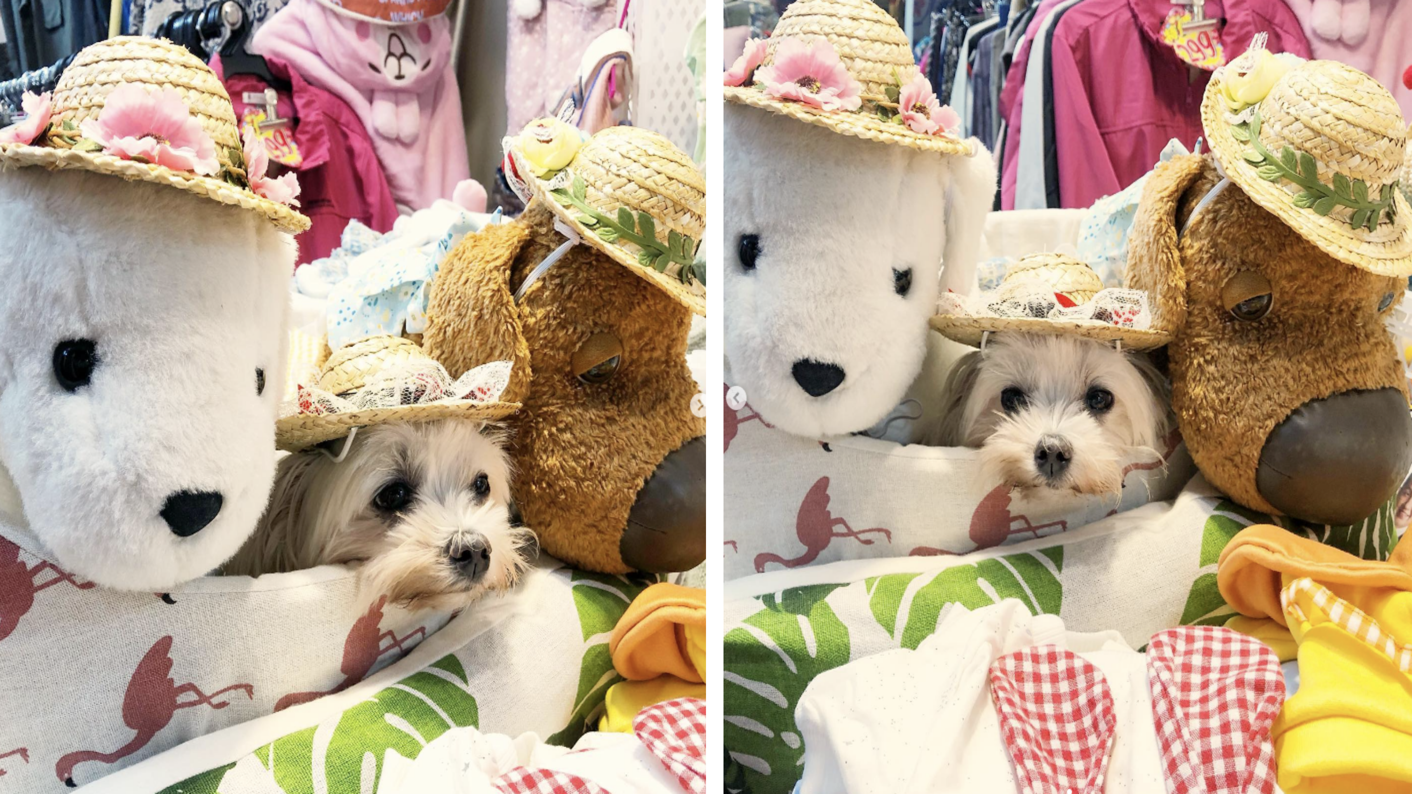 인형 사이에 있는 강아지는