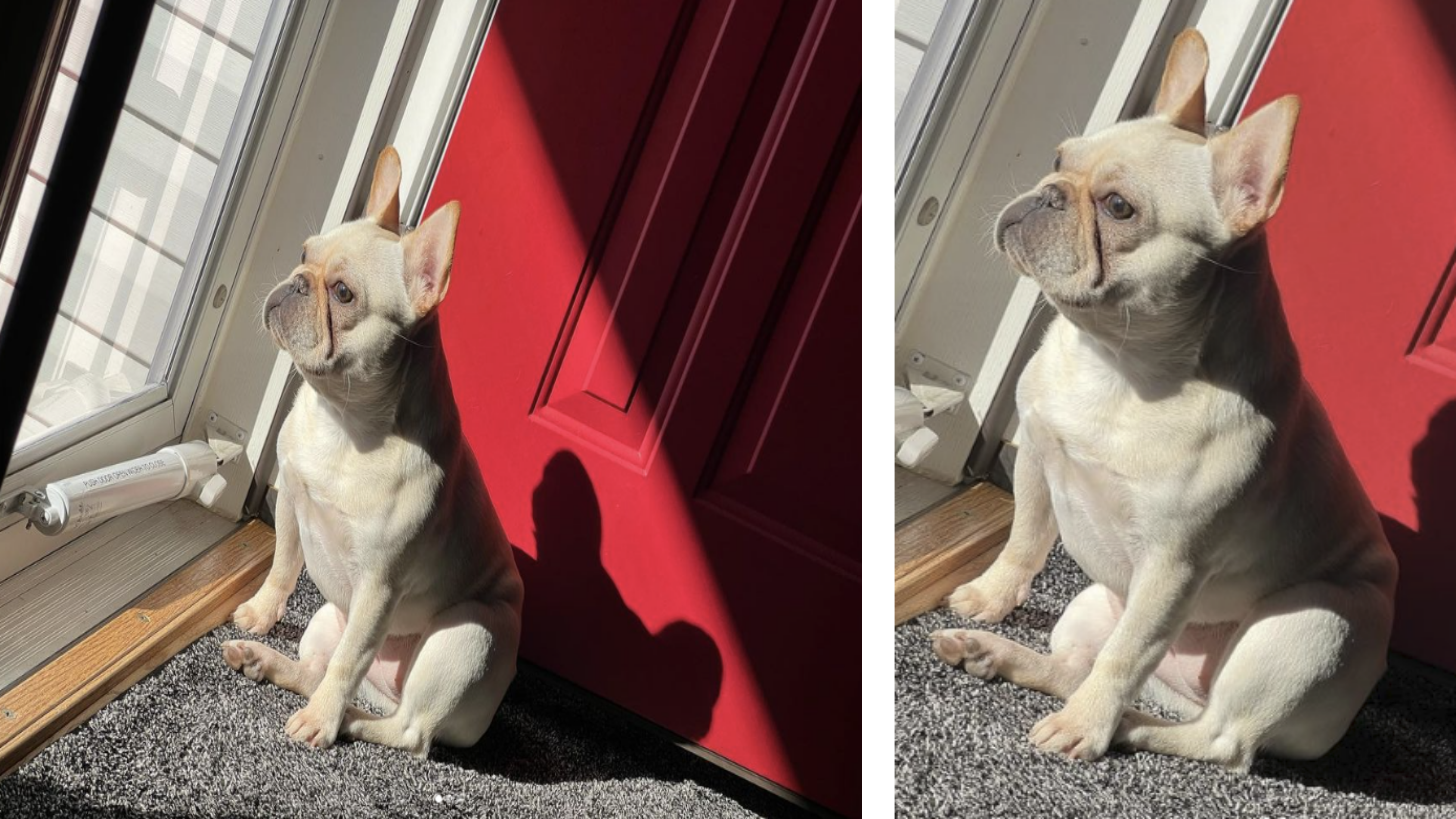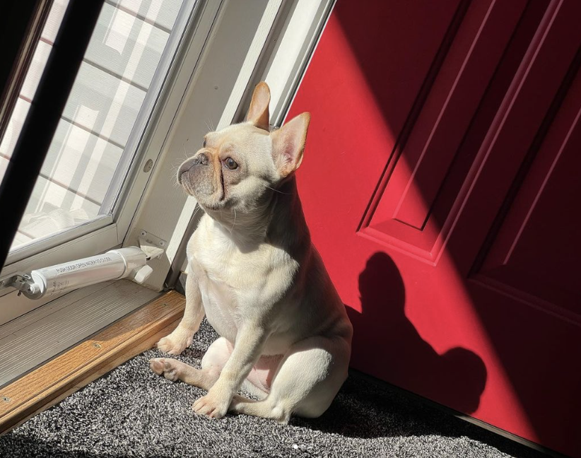 추운 겨울 나가기 싫어하는 강아지 따뜻한 햇살 속에서 창문을 보며 대리 만족