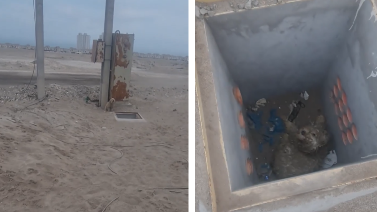 구멍 속에 빠진 강아지를 본 남성은