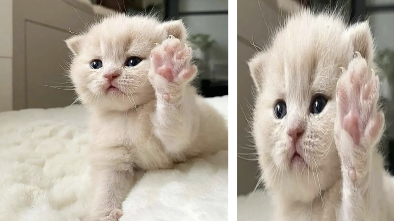 한쪽 발을 드는 고양이가 있습니다.