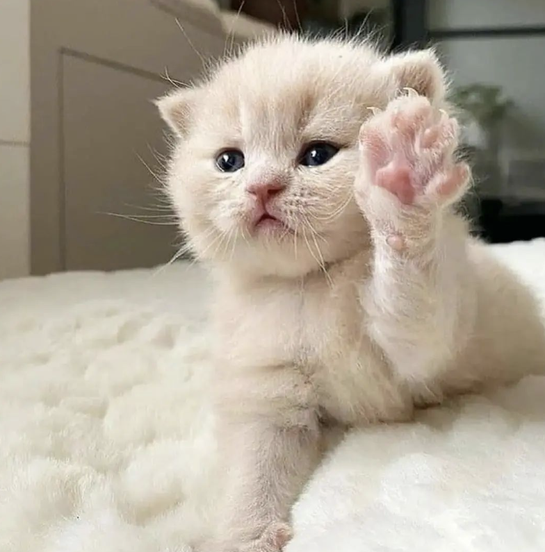 한쪽 발을 드는 고양이가 있습니다.