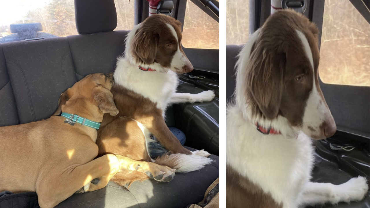 하지만 옆에 앉아있는 강아지의 얼굴을