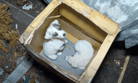없는 새끼 강아지들이 추운 겨울 쓰레기통