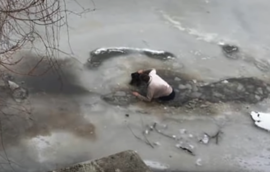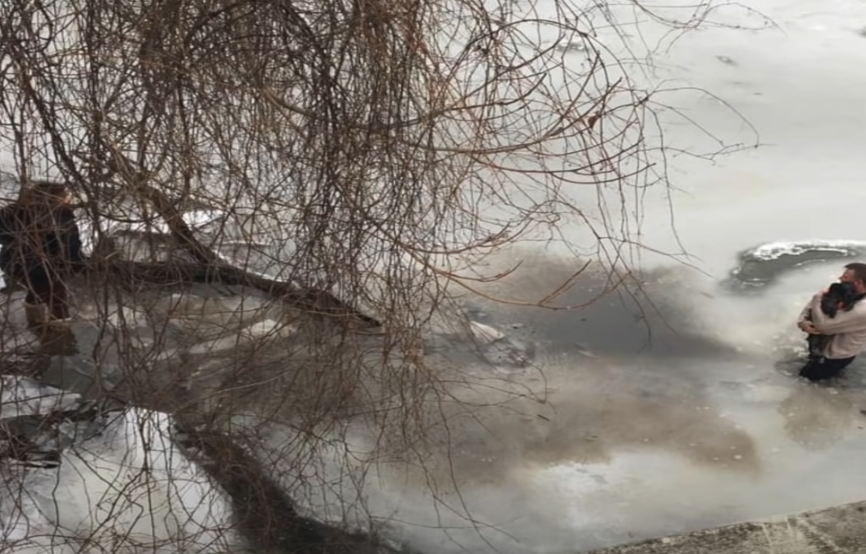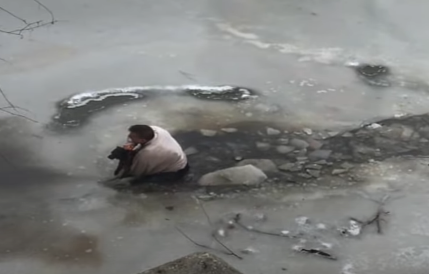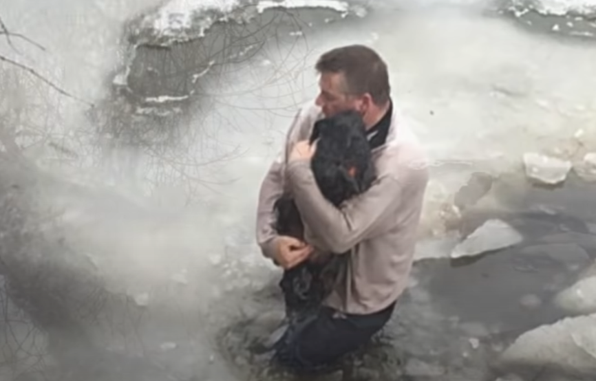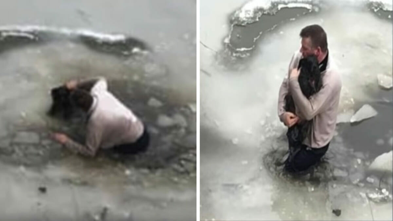 남성은 얼음물에 빠진 강아지를 발견한