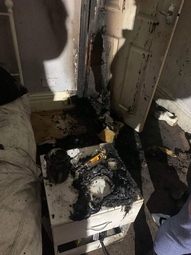 목욕하고 있던 여성의 아파트에 불이