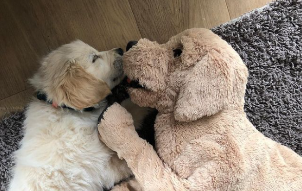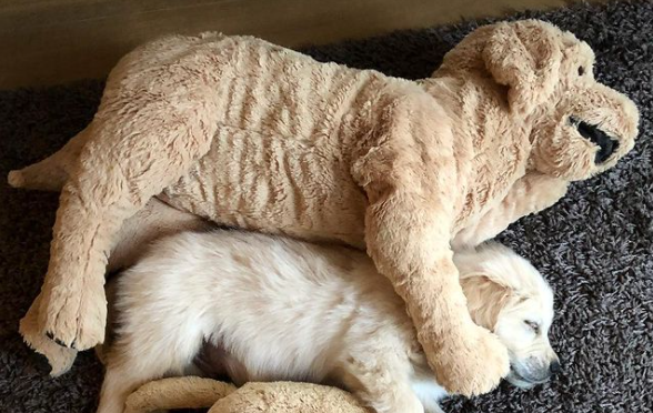 독일에서 살고 있는 골든 리트리버인 보리라는 강아지는 애착인형 없이는 어디론가 이동하는 것을 거부하는 강아지입니다. 처음 집 주인은 보리를 입양했을때 환영의 선물로 자신보다 큰 봉제 인형을 선물했다고 합니다.