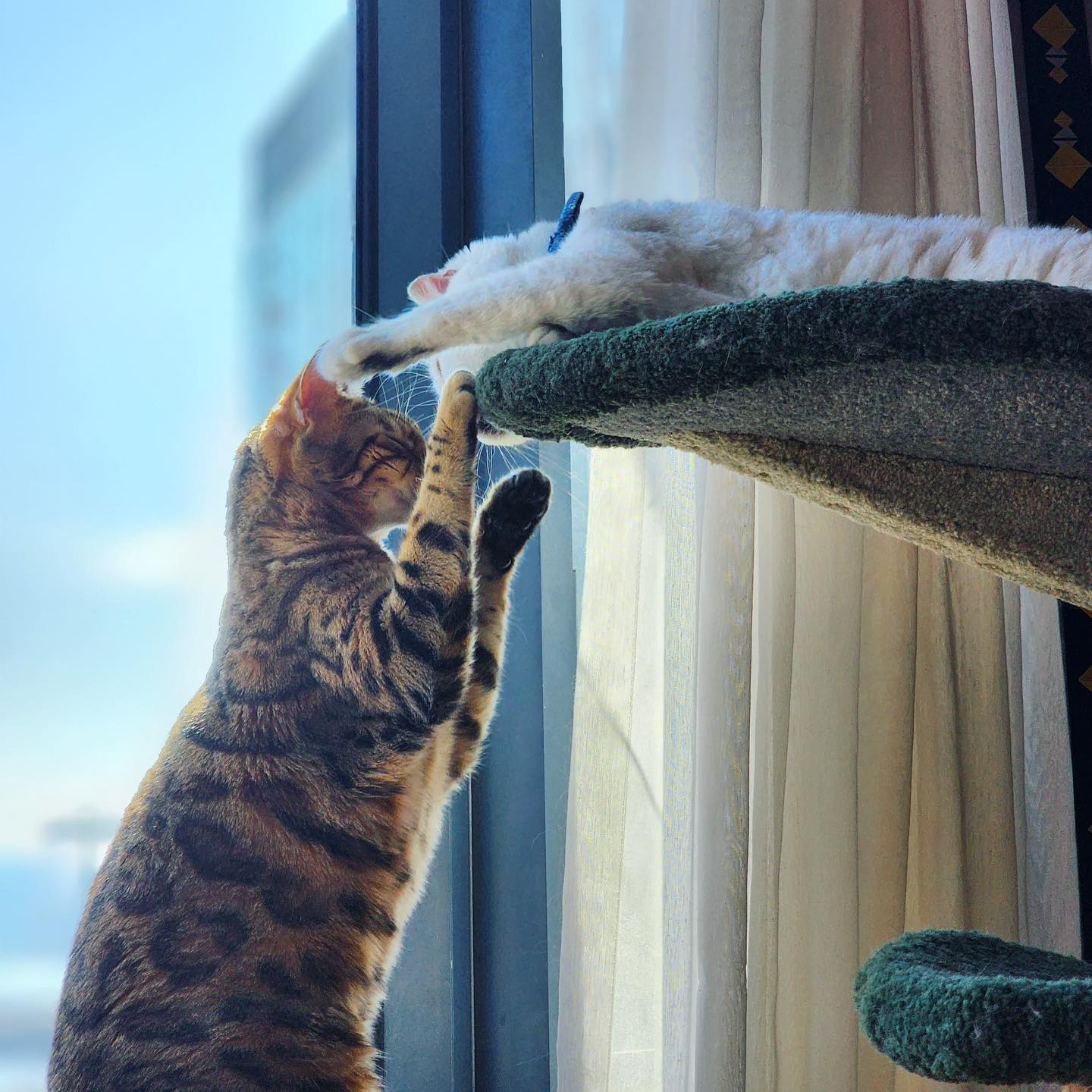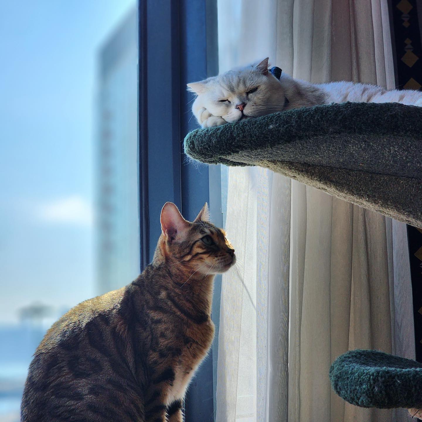 타워에 누워있는 고양이,