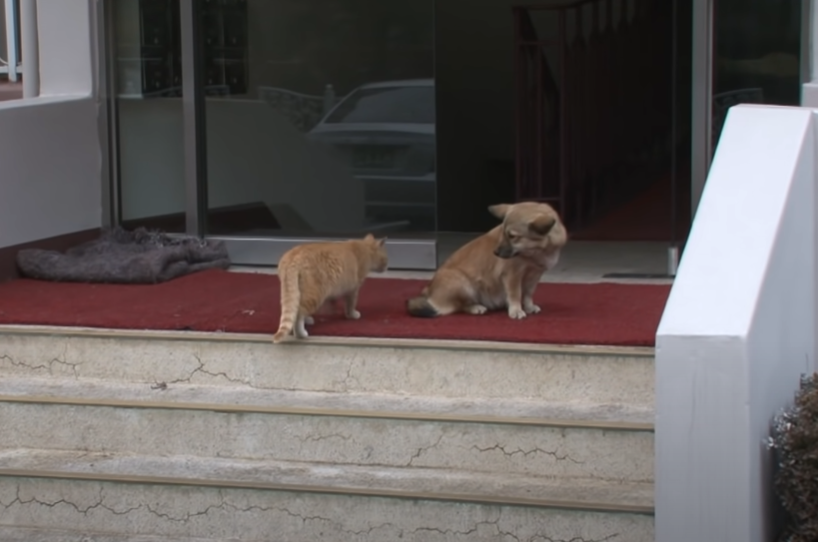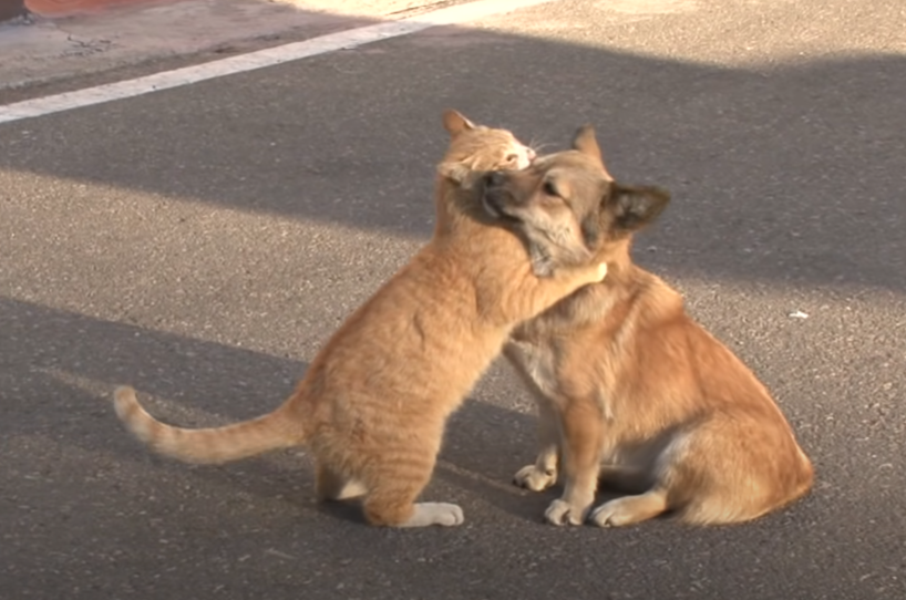 주인에게 버려진 강아지를 지켜준 집 없는 고양이