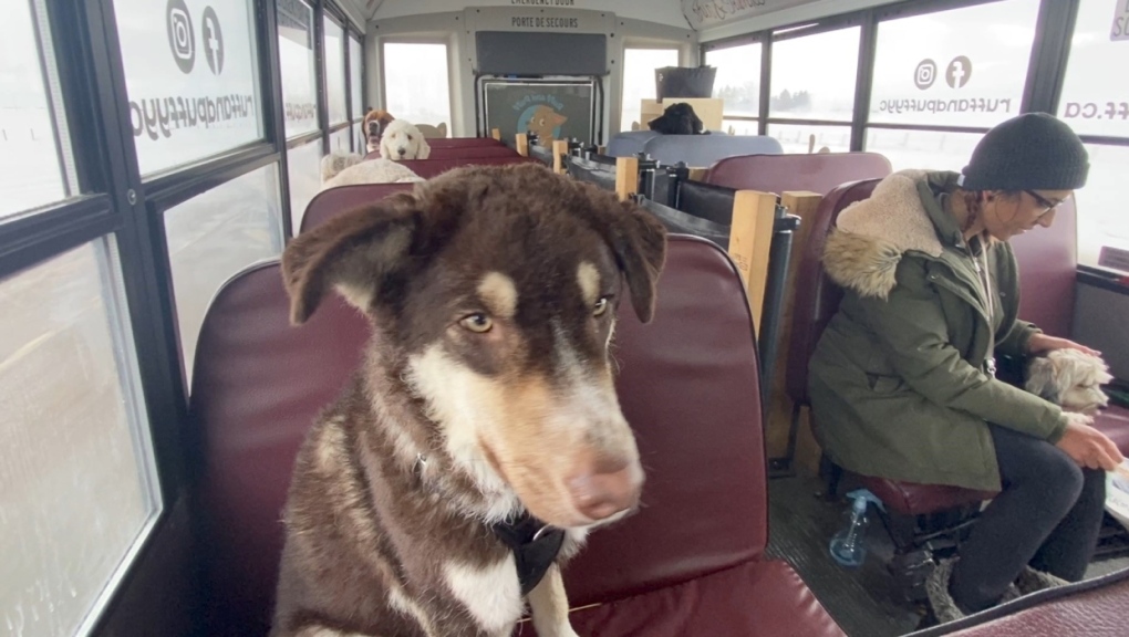 해당 버스의 목적지는 개들이 목줄 없이