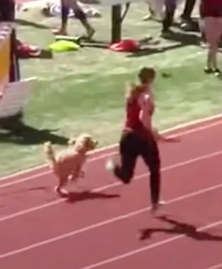 작은 강아지가 뛰고 있었고, 빠른 속도로