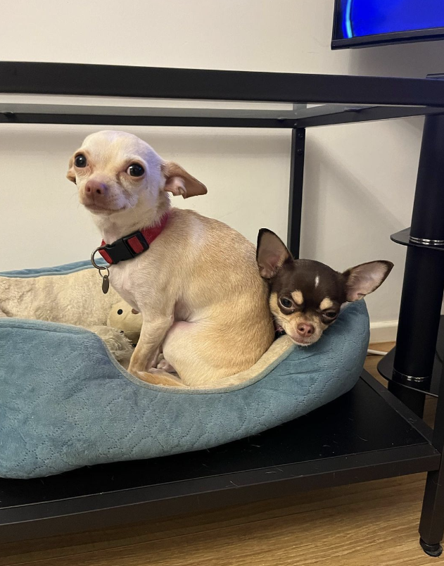우정이 깊은 두 마리의 강아지가 있습니다.