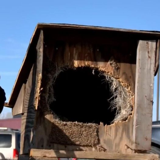 만들어진 개집에 판자와 못에 의해 밀봉이
