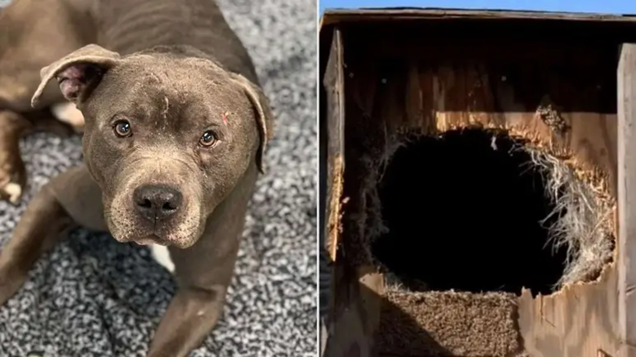 강 근처 나무 상자에서 죽음을 기다리던 강아지