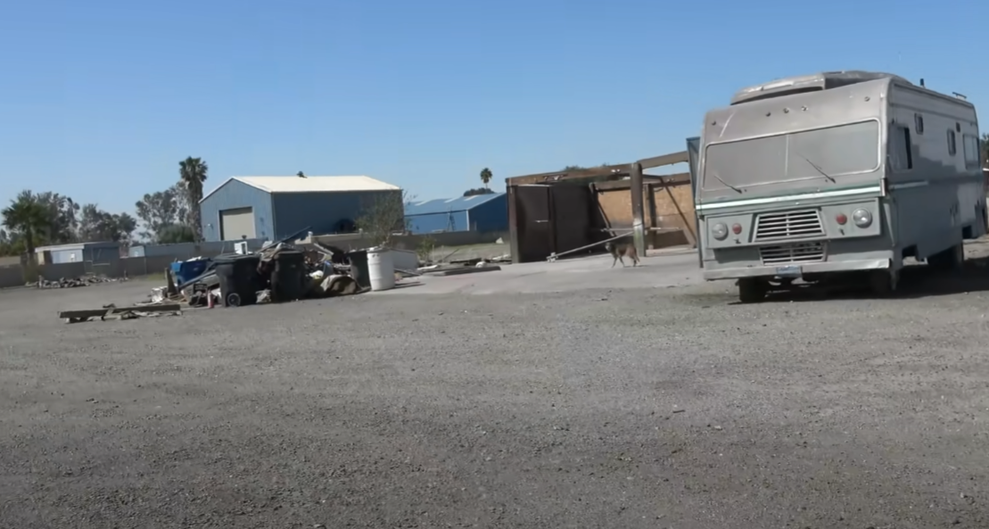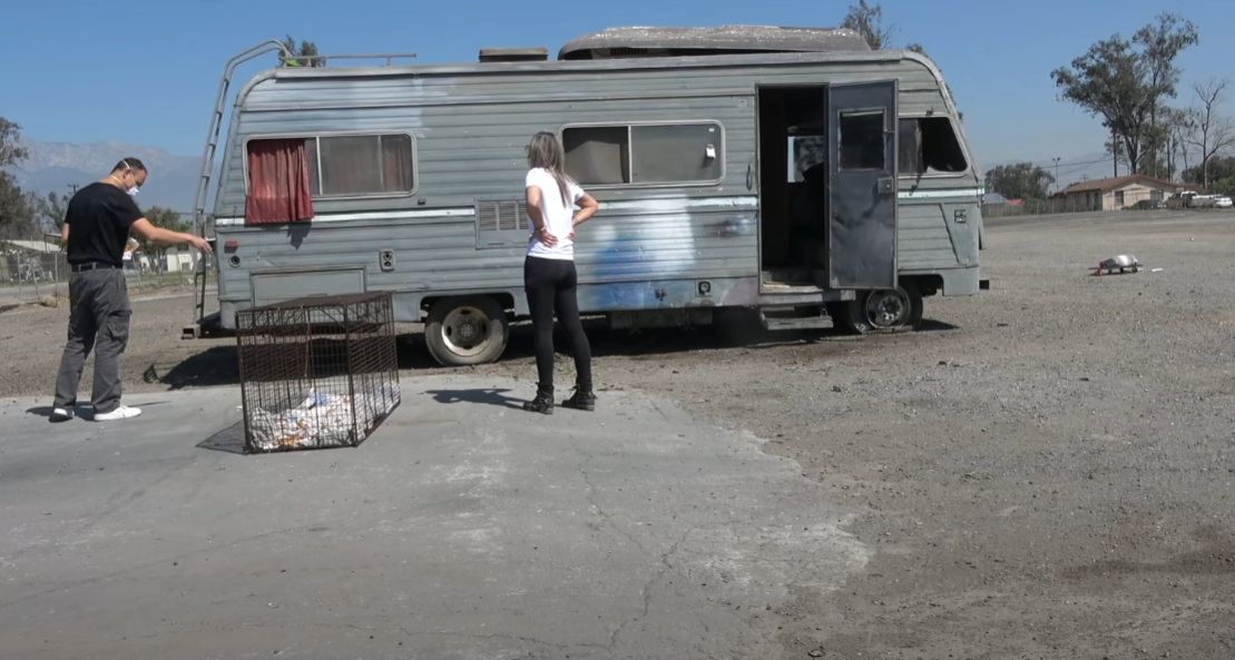 인적이 드문 곳에 버려진 상태로 오랜 기간 방치가 되어 있는 RV 트레일러 차량 주변에는 강아지가 한마리 있었으며 사람을 경계를 하였다고 합니다.