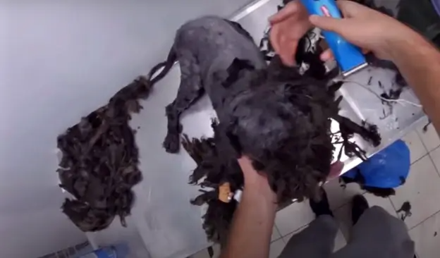 털이 온 몸을 감싸고 있던 강아지는 어느