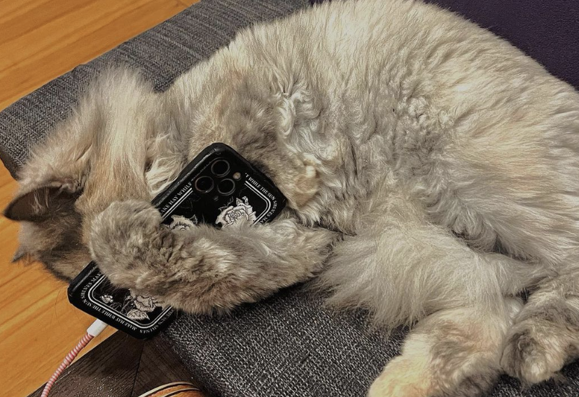 아마도 집사가 누워서 하는 핸드폰의 모습을