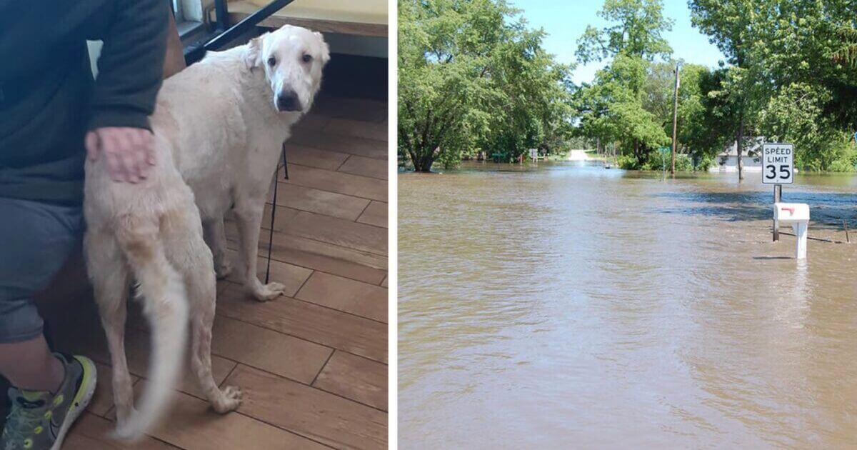 기둥에 매달린 자폐소년을 구하기 위해 홍수 속으로 헤엄치는 개