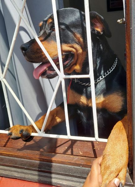 순간 주인은 덩치 큰 개를 붙잡고 방으로