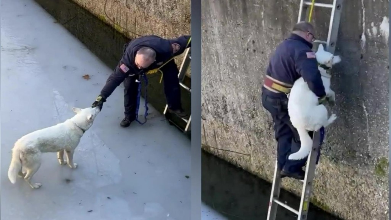 개가 빠진 웅덩이는 물이 얼어 있지만,
