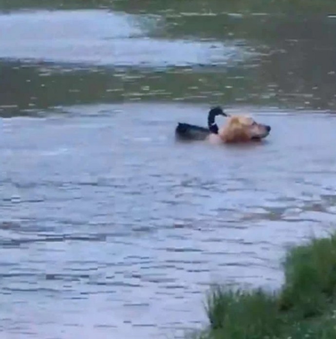여섯 살의 맥기는 집 뒤 연못에 사는