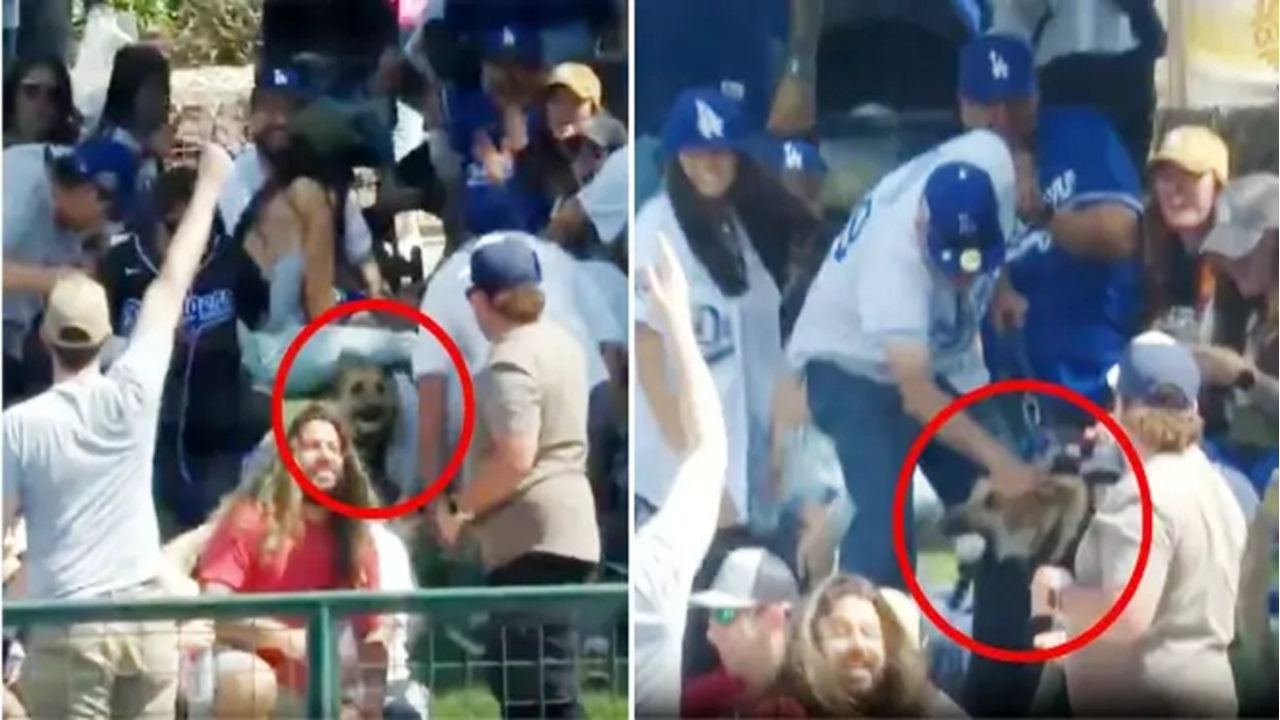 경기 중 다저스의 선수가 홈런을 쳐서 왼쪽