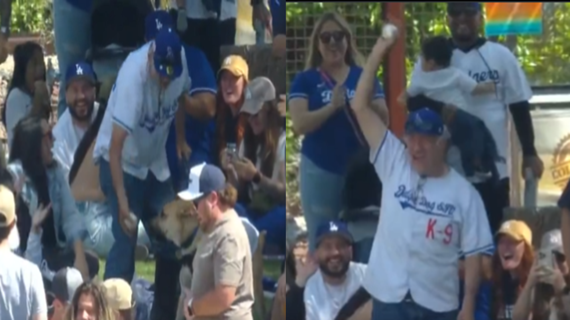 경기 중 다저스의 선수가 홈런을 쳐서 왼쪽