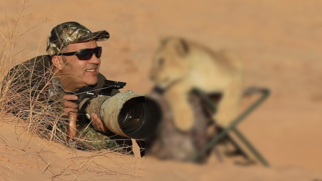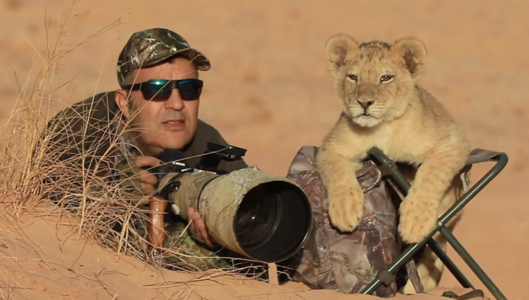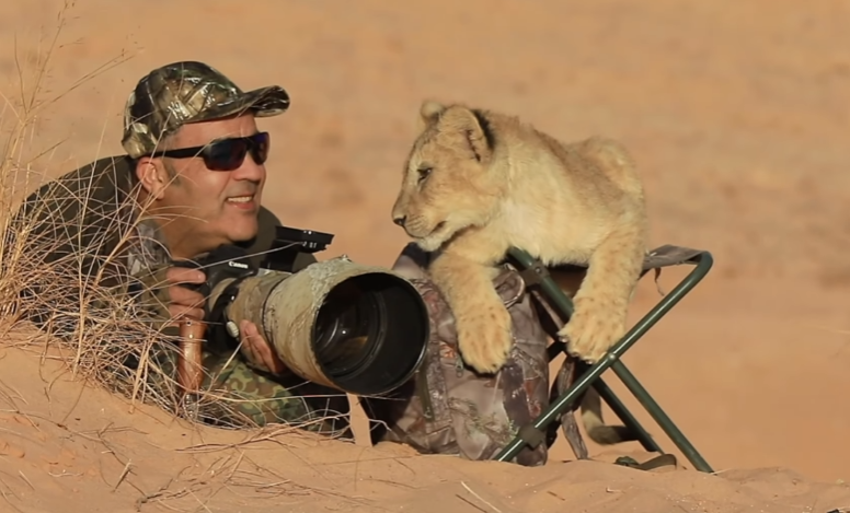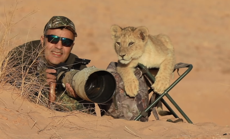 야생에서 사진 촬영을 하고 있는 사진작가