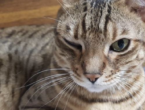 고양이라는 동물 자체가 워낙 표정이 없기는 한데 한 쪽 눈을 살짝 감았다 뜨는 사람으로 치면 윙크 비슷한 행동을 할 때가 있습니다. 고양이의 "윙크"는 두 눈을 서서히 감았다가 실눈을 뜨거나 감은 상태를 잠깐 유지하다가 뜨는 동작을 말합니다. 고양이가 두 눈을 꿈뻑꿈뻑 하는 모습은 신뢰를 하는 상대방에게 애정표현을 하는 거라고 해서 "고양이 인사법"이라고도 합니다.