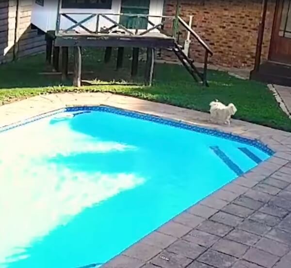 올해 15세가 된 포메라니안은 야외 수영장 근처를 걷고 있었는데 갑자기 미끄러져 빠지게 되었습니다. 작은 강아지는 물에 뜨기 위해 애썻고 스스로 올라올 수가 없었습니다. 시간이 지날 수록 체력이 떨어지게 되어 익사를 할 수도 있는 순간 친구 강아지 제시는 위험을 감지하고 바로 구조를 하기 시작하였습니다.