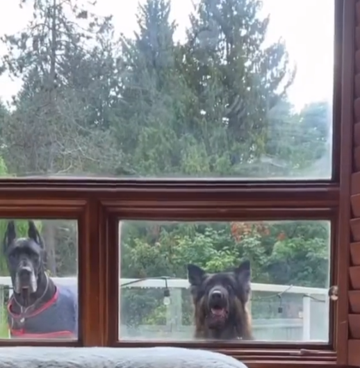 영상을 찍은 주인공은 집에 창문을 번갈아가면서 보여주고 있는데요, 창문에는 여러마리의 반려견들이 일제히 촬영을 하는 주인공을 바라만 보고 있습니다.